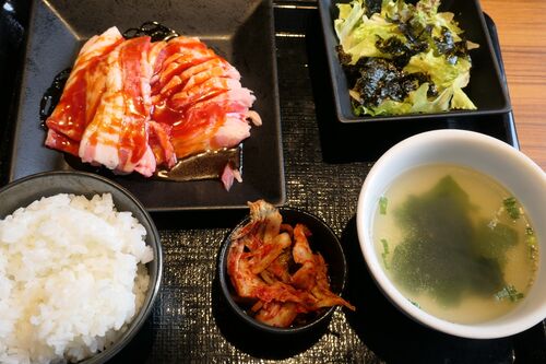 2回目の訪問です。前回は990円の「いちばんカルビステーキランチ」で大きなお肉が出てきて自分で焼いてハサミで切りました。今度は最初から切ってあるもの、迷いましたが890円の「カルビランチ」を注文。見本の写真と違ってかなり脂身のあるお肉でし…