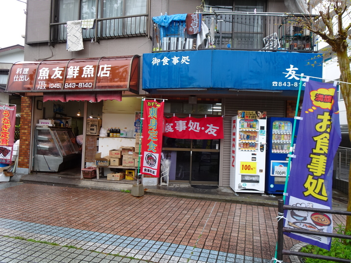 横浜市営地下鉄の上永谷駅から徒歩10分、環状2号線に面した「友」。隣の魚やさんが経営する海鮮食堂を訪問。税込み千円の刺身定食。大皿に盛られた新鮮なお刺身がザックザック。味噌汁も小さいけど蟹が半身入って出汁がとても美味しいです。流石、お魚屋さんの食堂と思いながら味わいました。