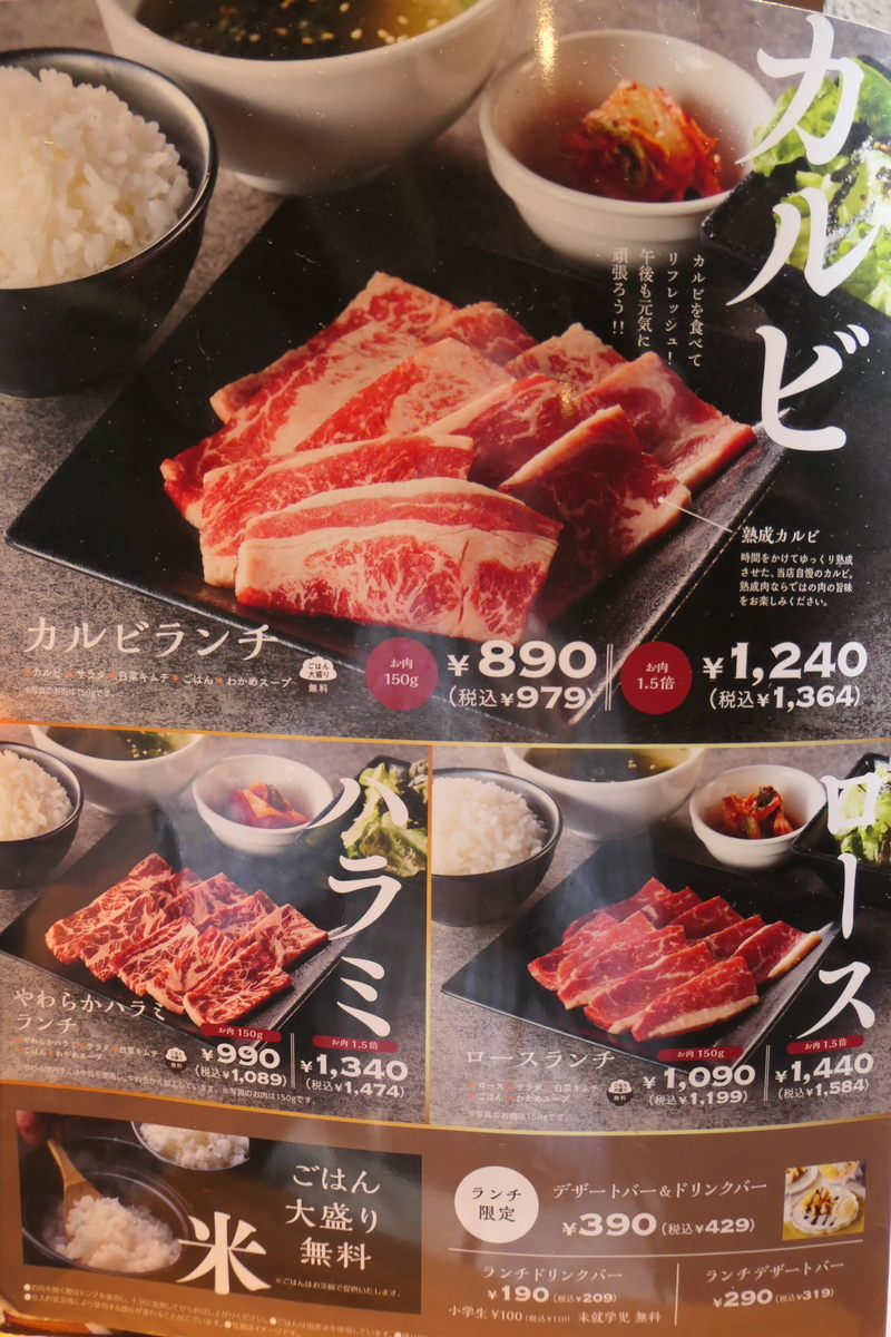 横浜・上永谷の焼き肉屋さん「熟成焼肉いちばん」でカルビランチ
