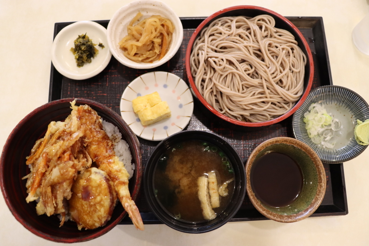 鎌倉を訪問、鶴ケ丘八幡宮のあたりでお昼になりました。以前入った「和風レストラン静久」、段葛が終わり鶴ケ丘八幡宮を中に入らず右の少し進んだ割と人が通らない穴場で席も空いてました。ランチタイムサービス品として小天丼と小蕎麦か小うどんのセットを注文。店先に自慢の天丼をどうぞと書いてあったとおり、カリカリに揚がった天ぷらが美味しかったです。蕎麦は普通、セットでなく天丼にすれば良かったと思いました。