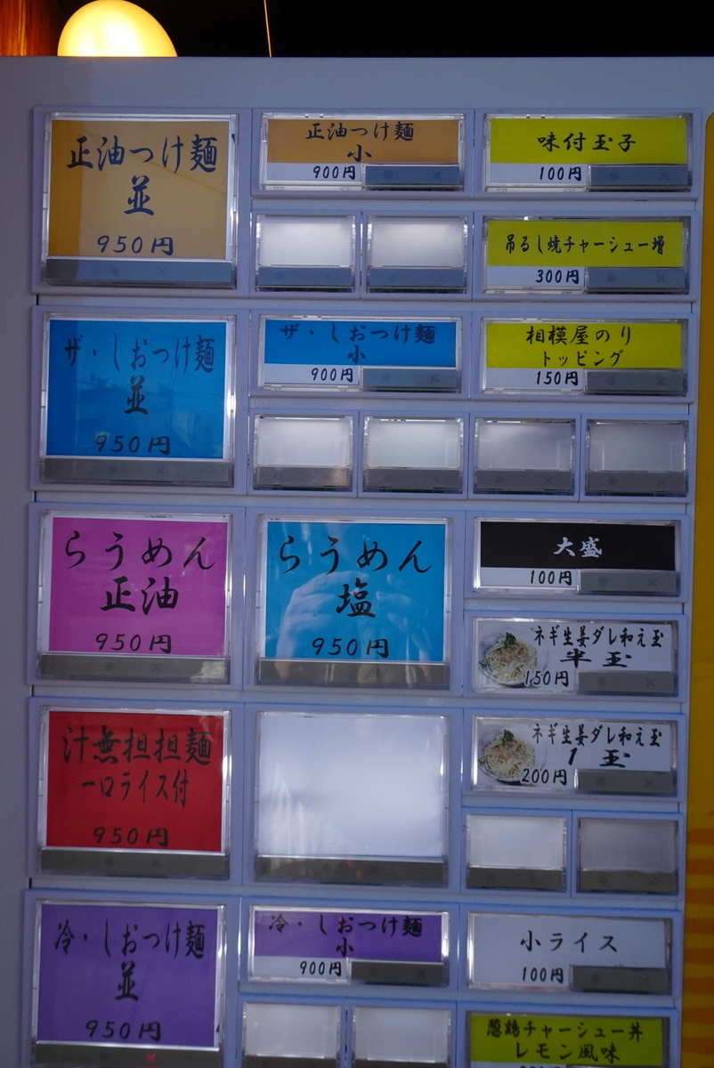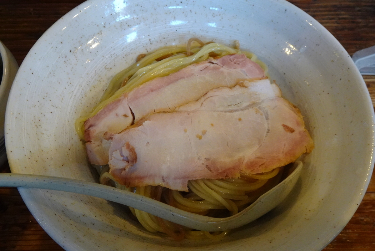 横浜の上大岡、鎌倉街道の旧道に面したラーメン屋「啜魔専科(すすりませんか)」を訪問。券売機には沢山の種類がありましたが、一番上の醤油つけ麵を選択、大盛りが100円だったのでついボタンを押してしまいました。麺は色が違う2種類の麺が混ざっており、最初は何もつけずに食べて麺そのものの味わいを楽しみ、次につけ汁に入れて、最後はつけ汁が薄くなったのでスプーンでつけ汁を飲みながら、色々と味わいました。